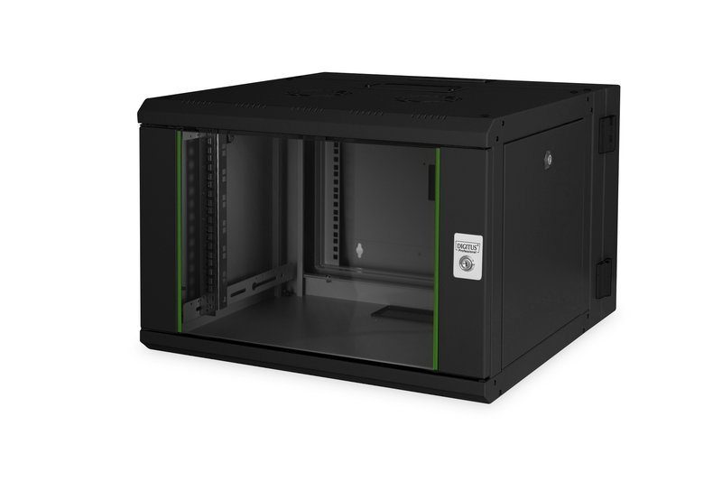 WandgehÂuse Unique Serie, abschließbare Sicherheitsglastür mit Stahlrahmen, IP20, Maße: (B)600 x (T)600 x (H)420 mm, Belastbarkeit 100 kg, max. Einbautiefe: 440 mm, schwarz (DN-19 07-U-3-SW)