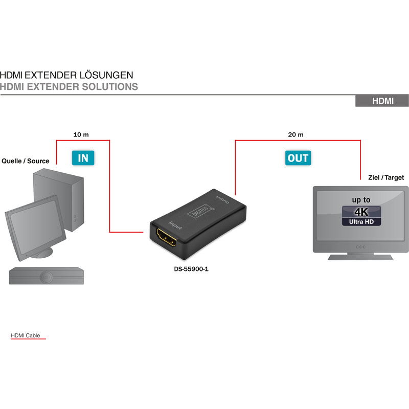 distance de 30 m comblée entre la source de signaux et le moniteur, supporte la résolution 4K, supporte la 3D, largeur de bande: 3,4 Gbps, intensité de couleur: jusqu’à 16 octet pour une résolution de 1080p, noir (ancien: DS-55900 / nouveau: DS-55900-1)
