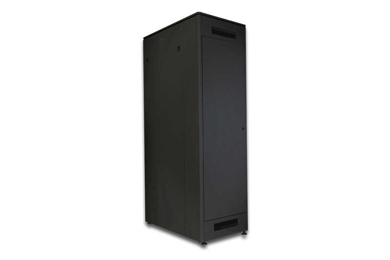 • caractéristiques: 1,5 mm de tôle en acier solide • construction modulaire avec cadre en aluminium • cadre très stable grâce à une technique spéciale de pliage de tôle • angle d’ouverture de la porte: 120° , porte avant et arrière • charnière de porte facilement changeable • dispositif d’aération du toit pour l’accueil des tôles du ventilateur • rails profilés 19″ montés à l’avant et à l’arrière de la baie • rails profilés 19″ à profondeur variable • rails profilés 19″ avec inscription U • pieds de nivellement pour un montage et un positionnement sûrs • plusieurs points de mise en terre dans la baie pour les composants du montage