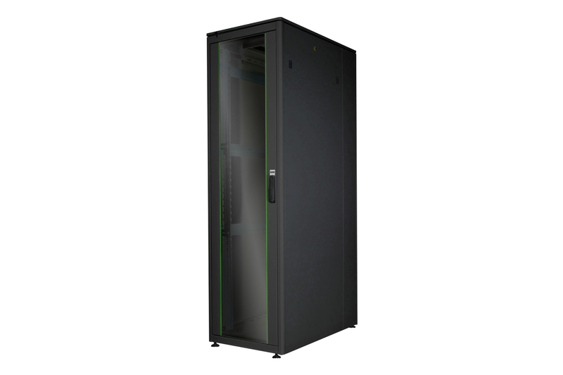 Baie réseau 19″ Unique Serie, porte frontale en verre constituée d’une pièce, (L)600 x (P)1.000 mm