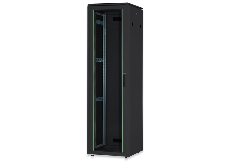 Baie réseau 19″ Unique Serie, porte frontale en verre constituée d’une pièce, (L)600 x (P)800 mm
