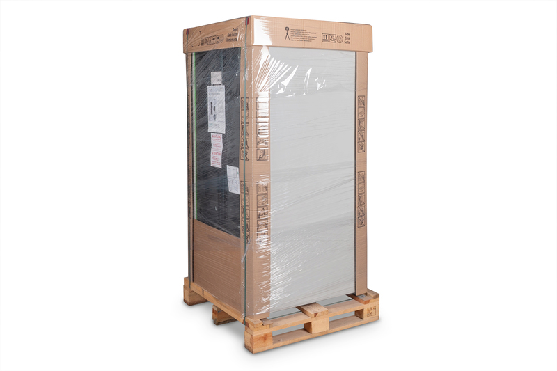 • porte frontale: porte en acier avec 4 mm de verre de sécurité et poignée pivotante encastrable et verrouillable, angle d’ouverture de la porte 120°