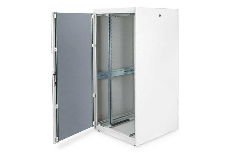 • caractéristiques: 1,5 mm de tôle en acier solide • cadre très stable grâce à une technique spéciale de pliage de tôle • dispositif d’aération du toit pour l’accueil des tôles du ventilateur • rails profilés 19″ montés à l’avant et à l’arrière de la baie • rails profilés 19″ à profondeur variable • rails profilés 19″ avec inscription U • rails profilés 19″ sont zingués de 8-12 micromètres pour résistance à la corrosion • charnière de porte facilement changeable • pieds de nivellement pour un montage et un positionnement sûrs • 2 clés pour les portes et les murs latéraux • plusieurs points de mise en terre dans la baie pour les composants du montage