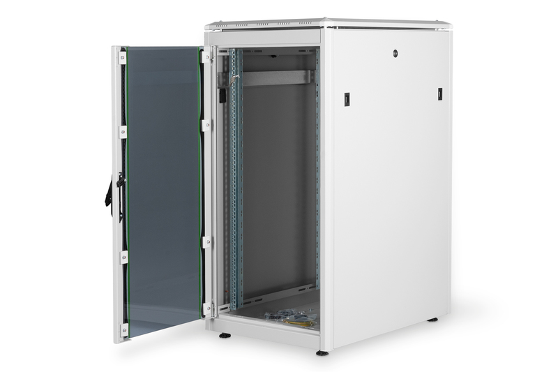 Baie réseau 19″ Unique Serie, porte frontale en verre constituée d’une pièce, (L)600 x (P)800 mm