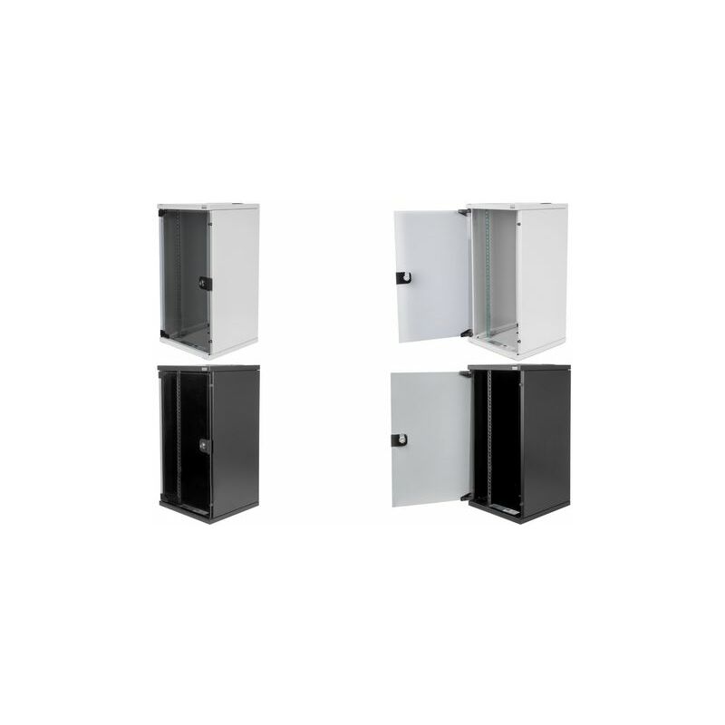 hauteur: 592 mm, classe de protection: IP20, porte vitrée de sécurité verrouillable, angle d’ouverture de la porte de 200 degrés, verrouillage à 1 point, rails profilés réglables en profondeur, tôle d’acier de 1,5 mm d’épaisseur, (DN-10-12U-B)