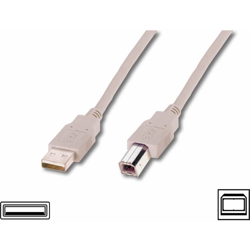 USB-A mâle – USB-B mâle, UL2725, capot moulé, blindage double, AWG 30, surface de contact: nickel, couleur de la fiche: beige, couleur du câble: beige, en sachet plastique (AK-300102-018-E)
