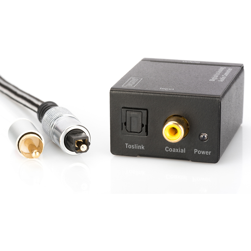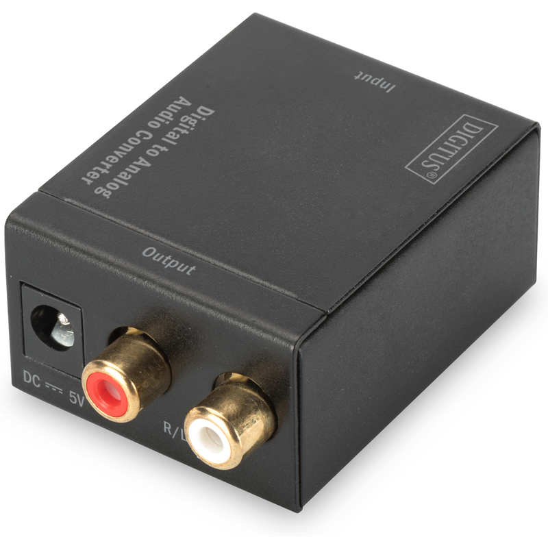 convertit les signaux audio numériques en signaux audio analogues, entrée: 1 x coaxial / 1 x Toslink optique, sortie: 1 x Cinch stéréo, filtre de bruit de fond intégré, alimentation électrique par bloc d’alimentation (5V/1A) (DS-40133)