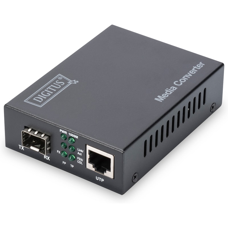 portée: 80 km, auto-détection de câble, fonction automatique MDI/MDI-X, mémoire tampon 2 MB, supporte les normes IEEE 802.3 Ethernet, IEEE 802.3u, IEEE 802.3z, LED de surveillance d’activité et de statut, dimensions: (L)70 x (P)95 x (H)26 mm (DN-82130)