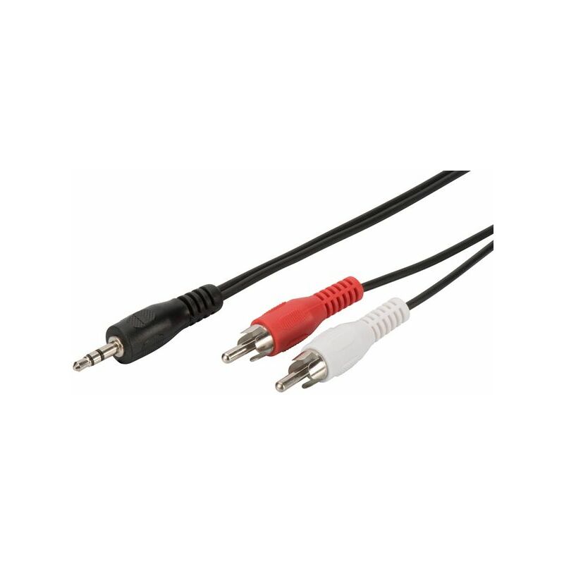 fiche jack mâle 3,5 mm – 2 x fiche mâle RCA, connecteurs CCS AWG 28, simple blindage, gaine + corps : moulé, câble / fiches : noir (AK-510300-050-S)