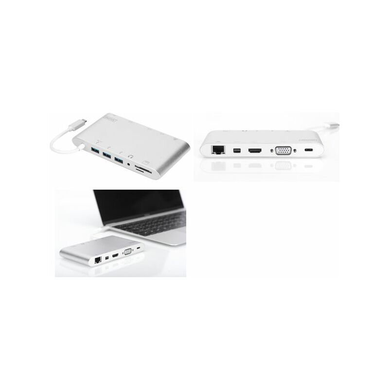 supporte Ultra HD, résolution: 4.096 x 2.160 p, connexion de 2 écrans en même temps, boîtier en aluminium, couleur: argent, longueur du câble: 100 mm, dimensions: (L)135 x (P)75 x (H)17 mm, poids: 250 g (DA-70861)