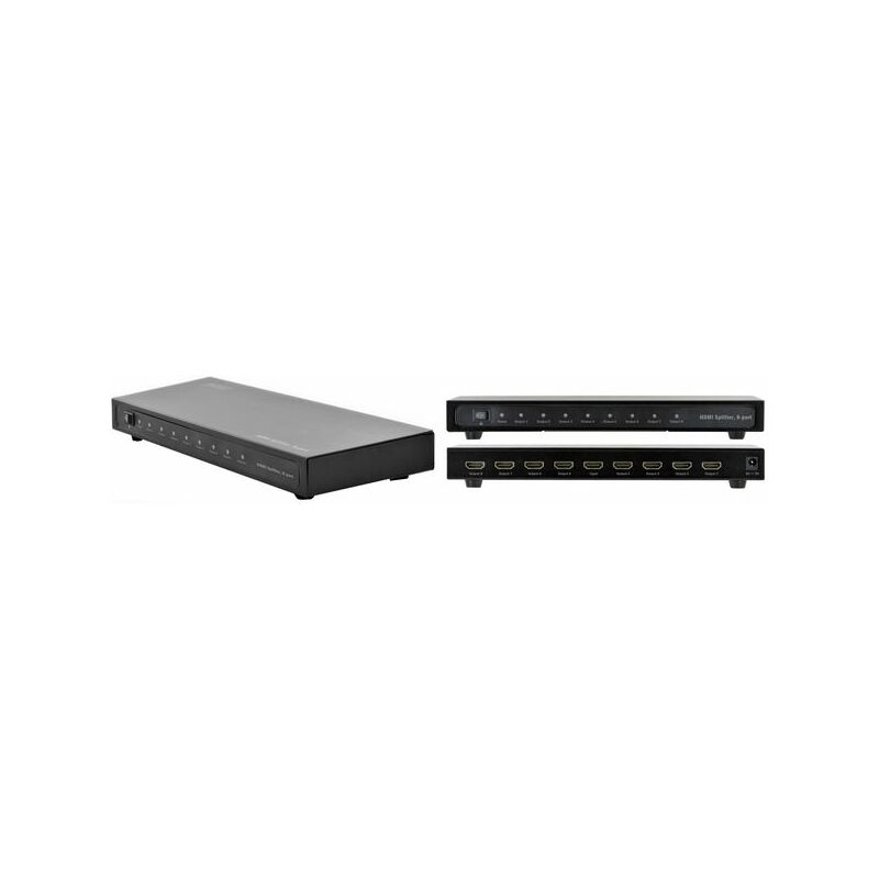 répartit un signal d’entrée HDMI sur 8 sorties, prend en charge HDMI High Speed, bande passante 225 MHz, intensité de couleur 12 bit/canal, supporte les signaux audio non compromimés tels que LPCM (DS-43302)