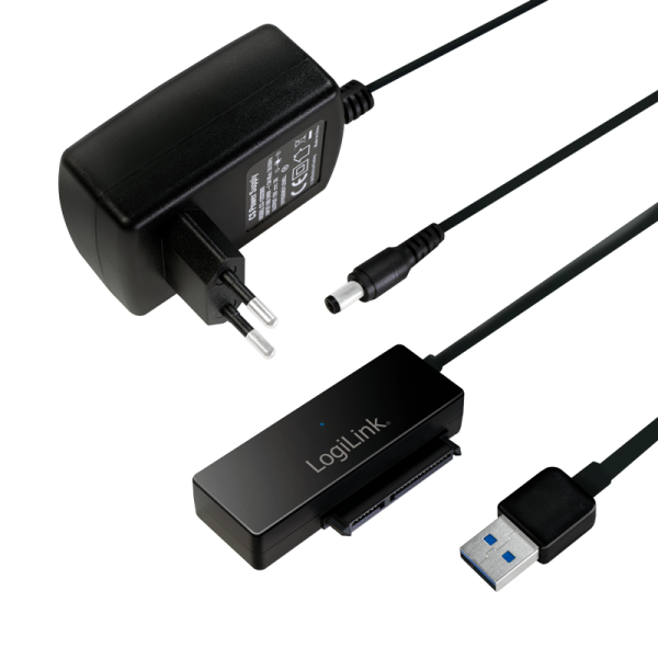 LogiLink Câble adaptateur USB 3.0 – SATA, noir connexions: USB mâle, SATA, taux de transfert: jusqu’à 5 GBit/sec., Serial ATA Rev. 2.6 (rétrocompatible), USB Rev.3.0 (rétrocompatible avec USB 2.0 & 1.1), alimentation externe (12V/2A), pour 1 capacité de disque dur jusqu’à 10TB(AU0050)