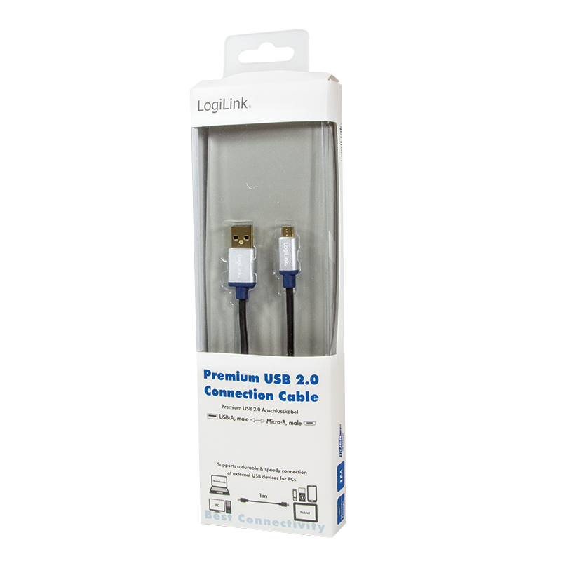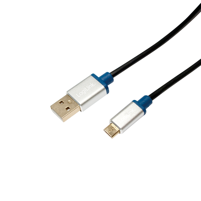 LogiLink Câble de connexion Premium USB 2.0, USB-A – micro USB-b, 1,0 m , USB-A mâle – micro USB-B mâle, correspond à USB 2.0 standard, capot: aluminium, blindage/construction: double blindé, matière des fils: cuivre, surface de contact:or, couleur du câble: noir, dans son emballage (BUAM210)