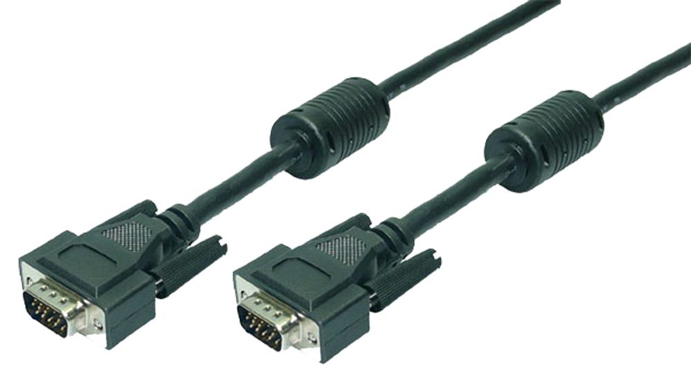 LogiLink Câble VGA pour moniteur, mâle – mâle, noir, 10 m VGA mâle 15 pôles – mâle (9 pôles libres), câble avec 2x noyaux ferrite, pour transfert de donnée vidéodouble blindage, correspond à la norme UL-2919, vis moletéestype de câble : AWG 30, conforme à la norme ROHS (CV0016)