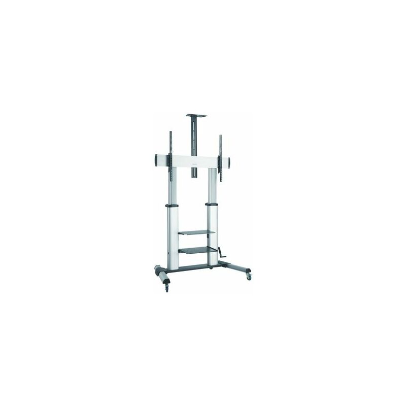 (60″ – 100″), inclinaison : -10 degrés / +5 degrés, pied avec 4 roulettes spéciales lourdes charges verrouillables, TV réglable en hauteur, poids supporté : max. 100 kg, en acier, aluminium & plastique, noir/gris (BP0084)