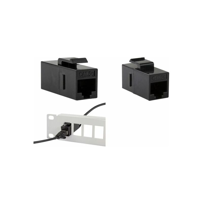 corps en plastique, 2x ports RJ45, classe D 100 MHz, corres- pond à ISO/IEC 11801 & EIA/TIA 568-C, avec système de clip- sage pour panneaux vides Keystone, pour câbles patch RJ45, dimensions : (L)14,5 x (P)32,7 x (H)22 mm, couleur: noir (NK4030)
