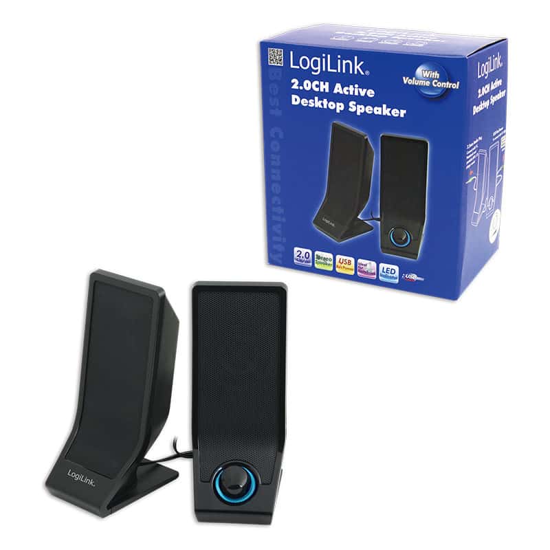 pour PC/ordinateur portable/lecteur MP3 etc., connexion via un jack mâle 3,5 mm, frequence: 60 Hz – 20 KHz, alimentation en courant via port USB, puissance de sortie: 2 x 1 Watt, dimensions: (L)70 x (P)90 x (H)170 mm, contrôle du volume, contenu de la livraison: 2 haut-parleurs actifs (SP0027)