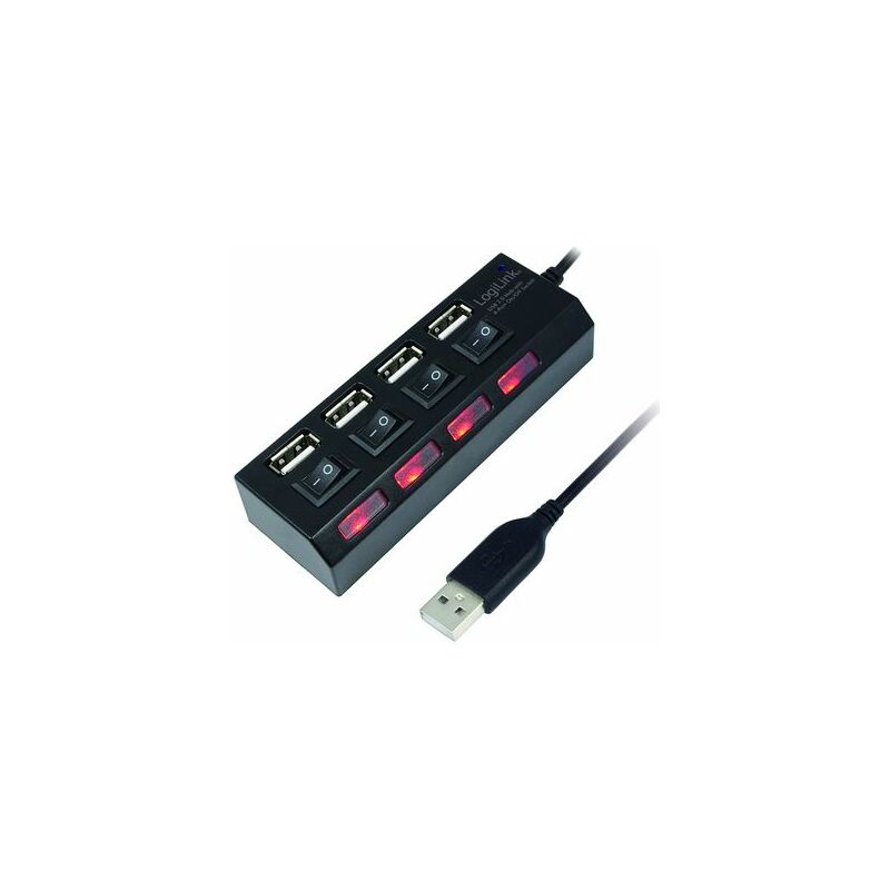connexions: 4 x USB-A femelle, 4 x interrupteur par port USB compatible avec USB 1.1 & 2.0 standard, voyant LED pour le fonctionnement, taux de transfert maximal de 480 Mbps, câble de connexion USB, bloc d’alimentation (5 V/2 A) dimensions: (L)143 x (P) 230 x (H) 70mm (UA0128)