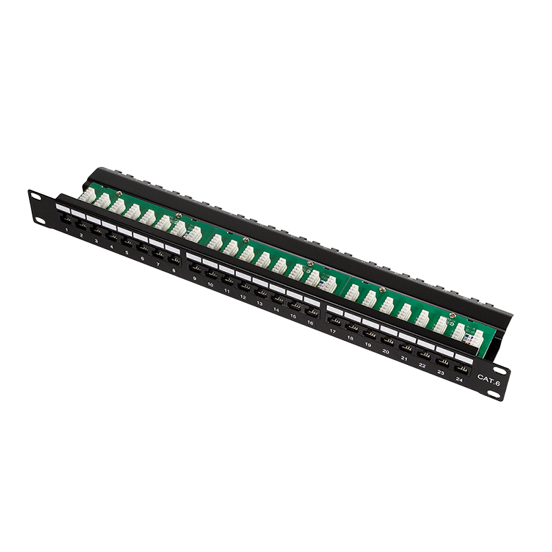 Panneau de brassage 19″ Cat.6, Classe E, non blindé
