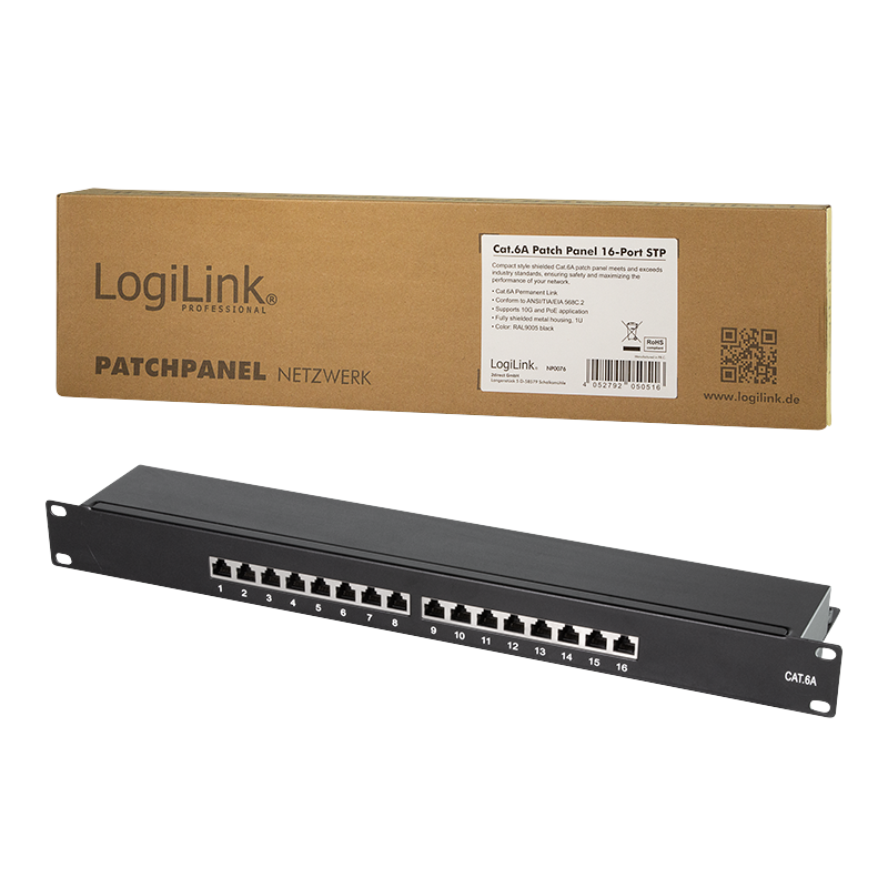 Panneau de brassage 19″ Cat.6A, 1 U, classe EA, blindé