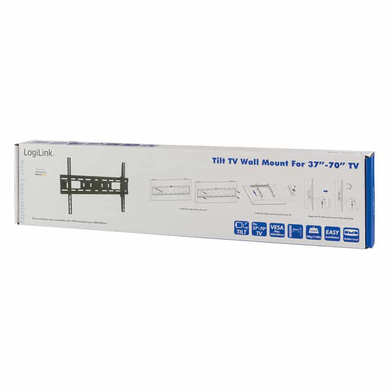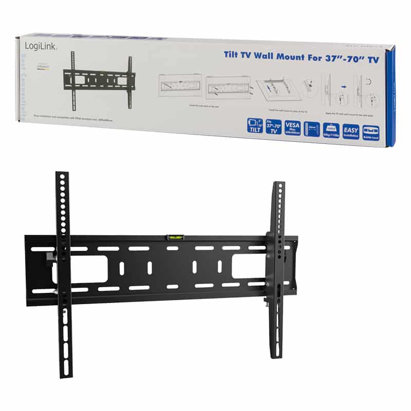 (37″ – 70″), inclinable: – 10 degrés / + 5 degrés, charge: max. 50 kg, distance au mur: 56 mm, en acier noir, supporte les VESA standards jusqu’à 600 x 400 mm, matériel de fixation inclus (BP0018)