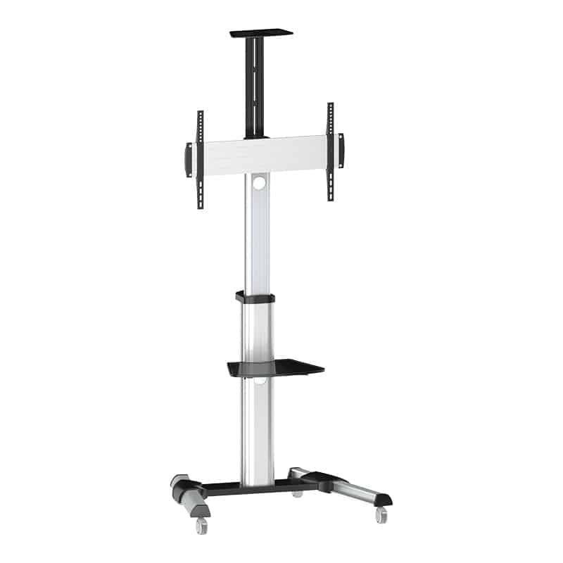 96,98 – 177, 8 cm (37″ – 70″), inclinaison – 12 degrés / + 5 degrés, rotation: 0 degrés / + 90 degrés, pied avec roulettes, hauteur de téléviseur réglable par le pied, charge max. 50 kg, en acier noir / argent, supporte VESA standard jusqu’à 600 x 400 mm