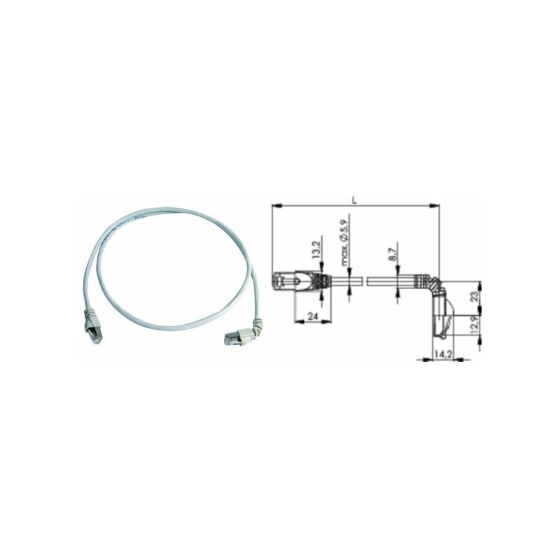 Câble réseau Cat. 6A (profond) S/FTP, 1 fiche coudée sur 90 degrés