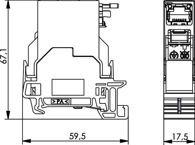 • le montage s’éffectue sur le rail de montage courant TH35 selon la norme DIN 60715 avec technique Clip